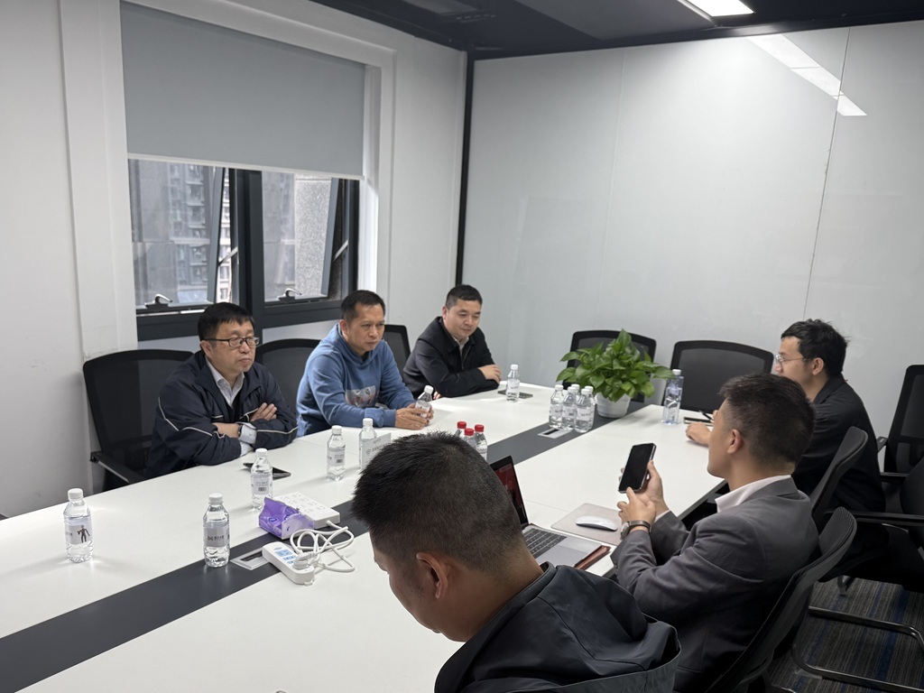 图7 调研组在毕特智固(香港)科技有限公司深圳办事处交流产业发展。